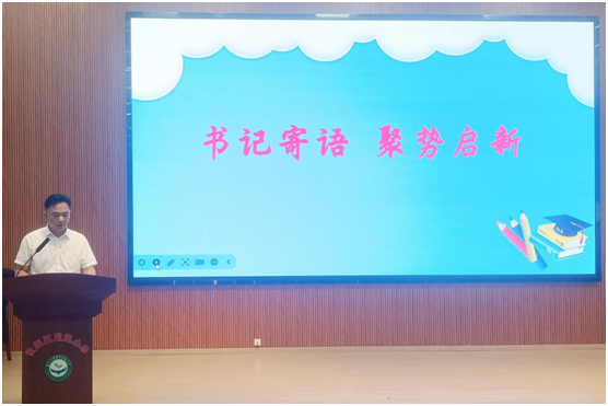 最后,学校党支部书记、校长聂前进向同学们表示热烈的欢迎和衷心的祝福;向全体教师致以最诚挚的节日问候!期望全体同学汲取奥运精神,勇于创新、敢于尝试,取得新突破、新成就!期待全体教师持续践行教育初心,努力培养更多优秀人才,推动曾都教育高质量发展,为曾都良好的营商环境持续贡献力量!