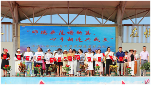 典礼先后举行了升旗仪式、迎新仪式、颁奖仪式等环节。我们迎接了来自曾都区文峰学校、聚奎门小学、瓜园小学、铁路小学的14名交流教师和来自云龙教联体分校区光化校区、十岗校区、大堰坡校区的5名交流教师。学生代表们向支持云龙教育事业的老师们送上了鲜花祝福。