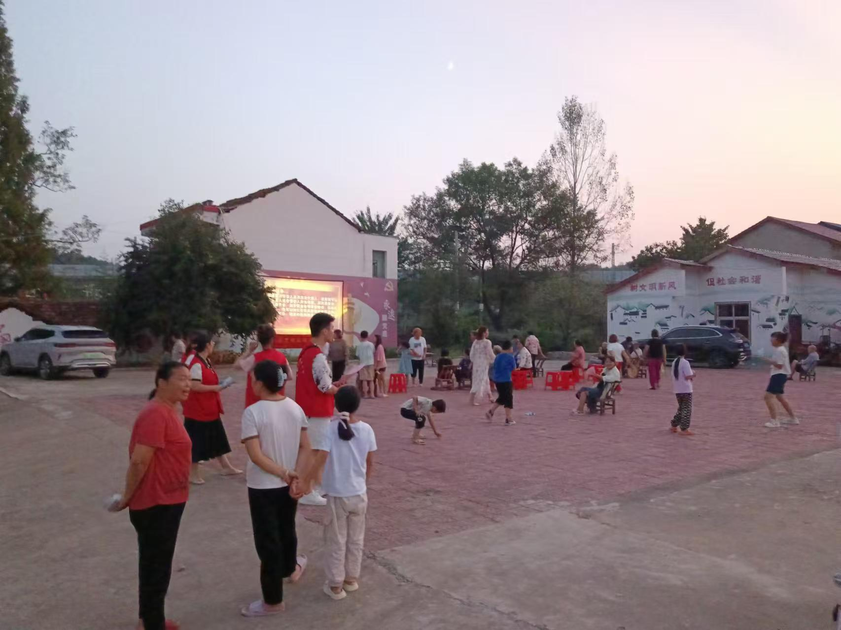 茶话会结束后,电影放映人员在大石村村委门前广场放映电影《鸡毛蒜皮也是事》,该影片讲述浙江诸暨市枫桥镇民间调解矛盾的故事,深化了村民对枫桥经验的理解。
