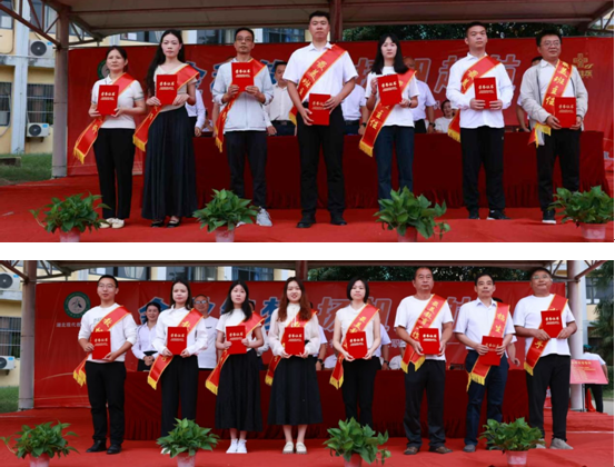 校党委委员、副校长陈君宣读2024年随州好老师、随州市卓越班主任、随州市“十佳学生资助育人工作者”和我校2024年“最美教师”、“最美班主任”、“最美工作者”、“招生能手”表彰文件。校党委委员、副校长王涛宣读了随州市第六批骨干教师、学科带头人的任命文件。校党委委员、副校长周飞宣读了2024年优秀学生、优秀班干部表彰名单,这些优秀学生在我校“特色教育”的土壤中茁壮成长,展现出了多元的发展潜力。