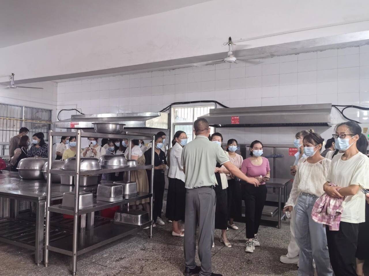 上午9时许,近50名家长代表如约而至。学校领导首先介绍学校工作开展及建设情况,特别是后勤管理变化。家长代表们对伙食质量一一发表意见,并对成本核算、价格是否合理等举手表决。之后,家长们有序进入食堂。在工作区,家委们近距离了解了各功能室的布局,食材的选择,储存、加工到烹饪一系列操作以及器皿的洗消等环节,纷纷表示孩子们在校吃的健康,吃的放心。