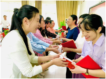 随后擂鼓墩小学贺爽主任宣读师徒结对名单,瓜园小学苏锋校长、擂鼓墩小学汪加刚校长、马家榨小学王静校长为师傅们颁发聘书。徒弟们纷纷整理衣冠上台,鞠躬行拜师礼,在庄重的礼节中缔结亲厚的师友之约。