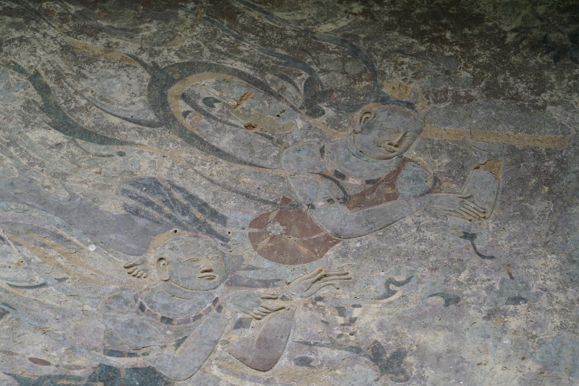 而其他身体部分、衣裙、飘带等是描绘出来的