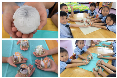 老师们带小朋友们制作美味的冰皮月饼,小朋友把美好的祝福团进月饼中,化成美味分享给老师和爸爸妈妈。幼儿园给每位小朋友都准备了美味的月饼,大家围坐在一起,品尝月饼,共同感受节日的氛围,在孩子的童年里留下一抹属于我们中国特有的传统节日印记。