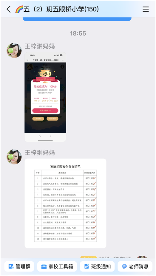 本次主题教育活动,学校根据上级文件精神,以主题班会的形式组织师生观看了由国家消防救援局联合教育部开展的“2024年秋季全国中小学消防安全公开课”,并在放学后利用班级群组织家长观看“湖北消防家庭云课堂”。公开课通过寓教于乐的方式,聚焦校园日常消防安全知识、各类火灾类型的特点及应对措施等内容进行宣教;同时,平台还结合公开课组织学生及家长开展消防主题线上有奖知识问答活动。学生及家长们认真观看,积极参与有奖知识问答,自发开展针对家庭消防安全隐患问题进行线上自查活动,及时发现并消除家庭火灾隐患 。