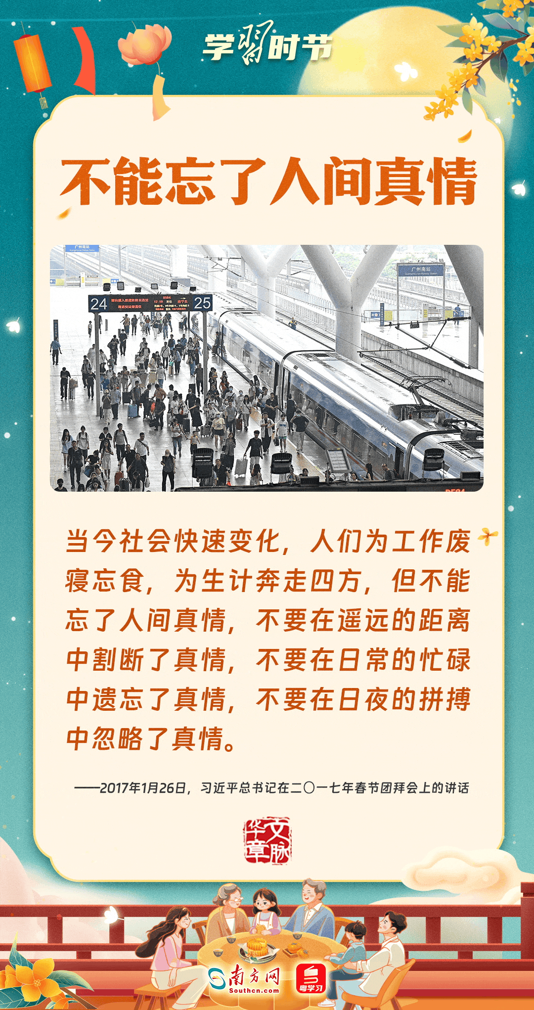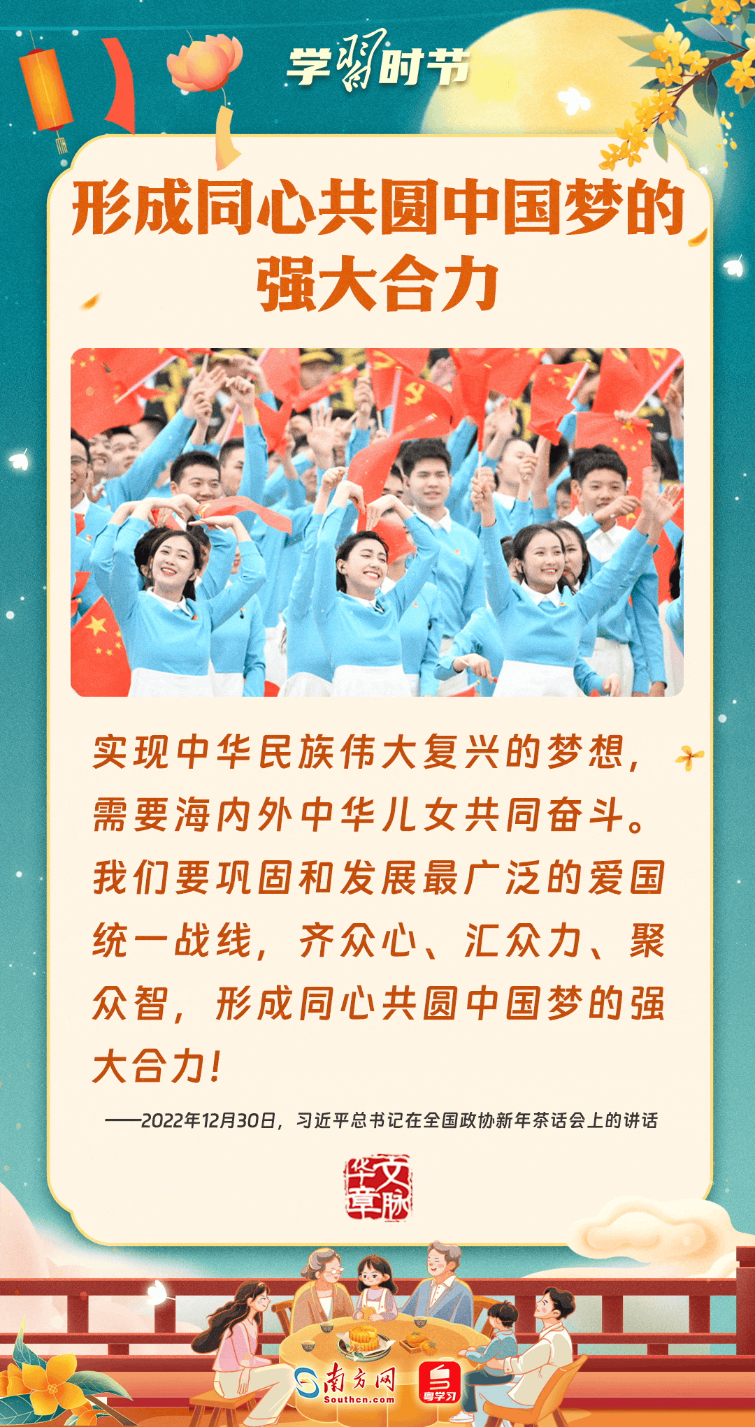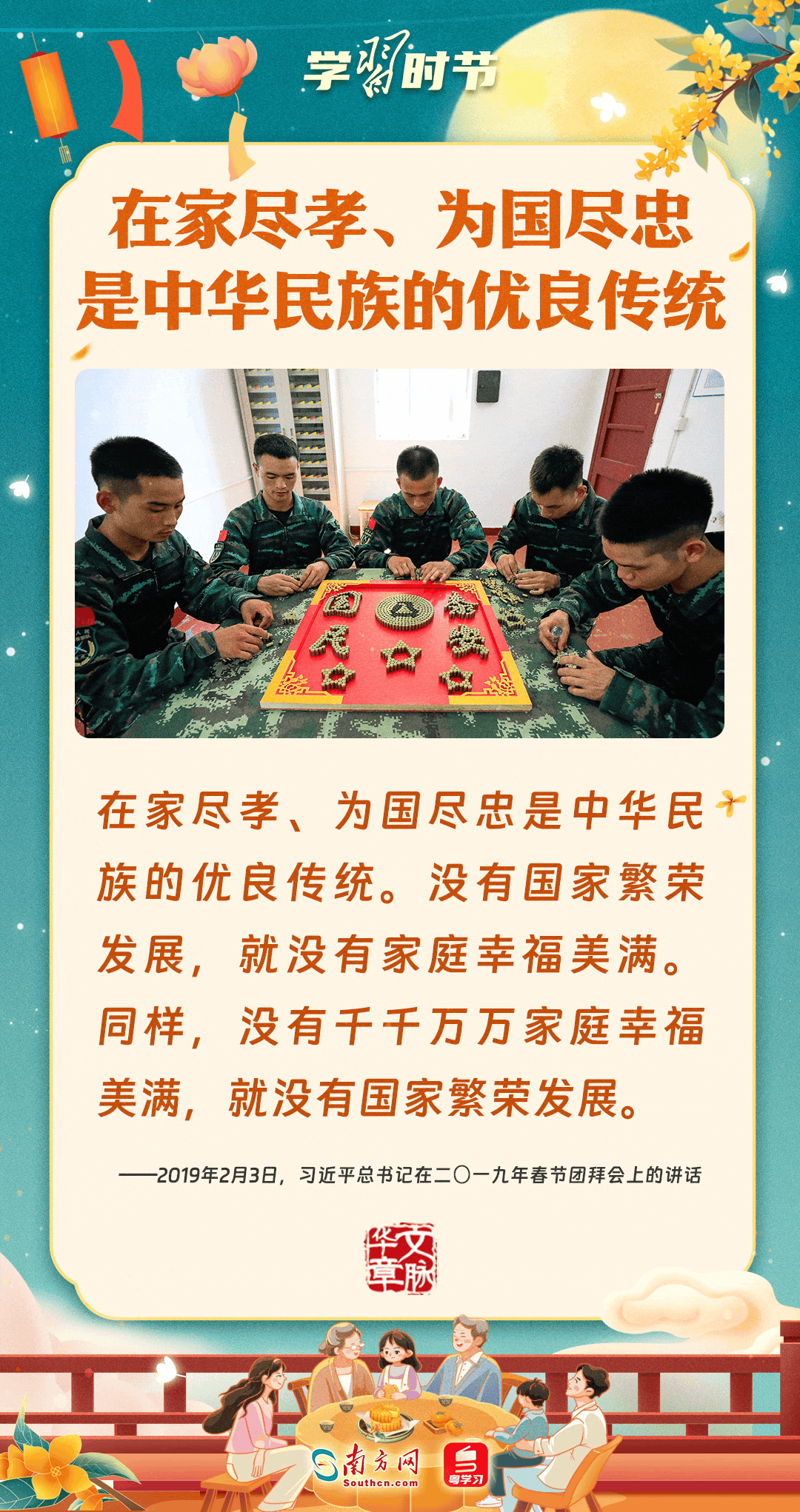 明月寄相思,家国总关情。作为中华优秀传统文化的重要载体之一,中秋节不但寄托着海内外华人对阖家团圆的美好期许,还承载着深厚的故乡情、家国情。习近平总书记曾在多个场合深刻阐述个人、家庭与国家之间的关系,强调要厚植家国情怀,把实现个人梦、家庭梦融入国家梦、民族梦之中。中秋佳节,让我们一起回顾总书记那些经典话语,共同感受他至深至厚的家国情怀。
