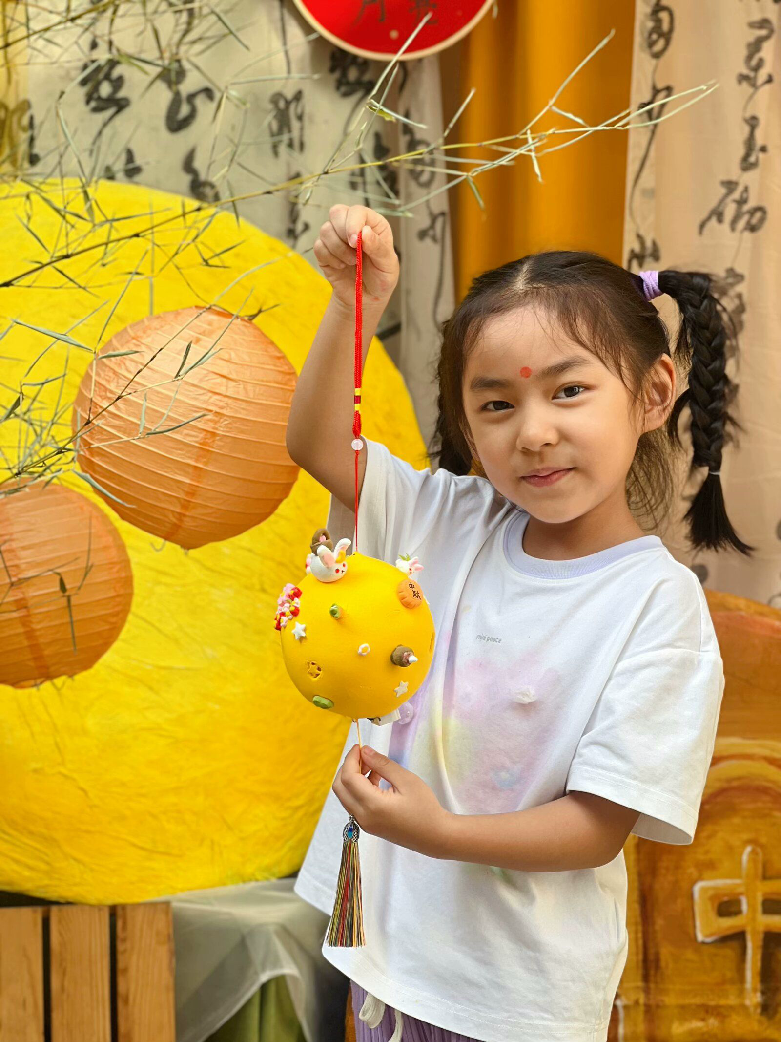 一、二年级的孩子们用小手捧着用心做的月饼和灯笼,心里美滋滋的,脸上也洋溢着幸福的笑容。