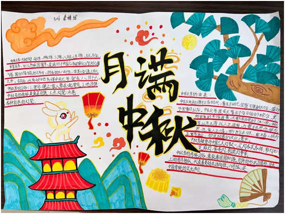 一是用照片记录美好瞬间。拍摄与家人一起做美食、吃月饼、赏明月的家庭团圆照,记录与家人团聚的温馨时刻。二是与家长在家共同制作灯笼迎中秋佳节。三是做好的“创意灯笼”带来学校布置教室,并评选出“最有中秋氛围班级”。四是围绕“中秋节”主题创作了一幅幅优秀的手抄报。五是回顾自己读、忆、赏月的历程,与亲友、同伴交流分享感悟,用作文的形式将最难忘记的一幕记录下来。