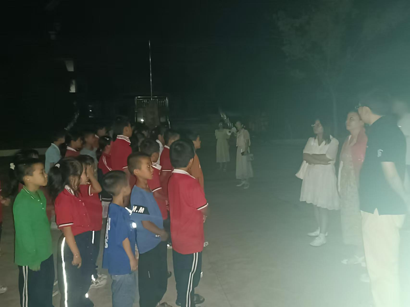 长岗镇中心小学开展了寄宿生夜间逃生演练活动。