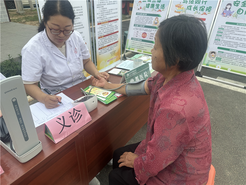 在广场边的文明实践服务区,爱心义诊、书法展、婚俗改革宣传等摊位一字排开,附近居民陆续来到广场,看看有没有自己需要的服务。村民黄成风告诉记者说:“这几天我经常感到头晕、胸口闷,一直没有时间去医院看看,恰好今天村里来了义诊,就来咨询一下,这个活动太好了!”