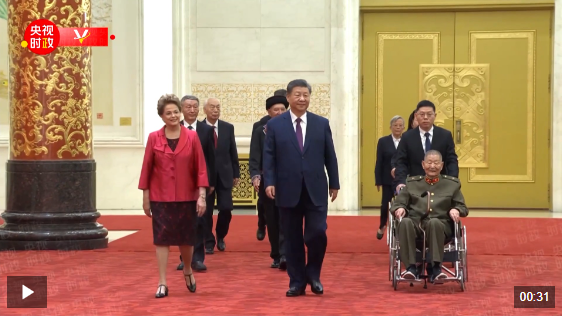 习近平指出,75年来,世界上有很多与中国人民志同道合、风雨同舟的老朋友、好朋友,今天被授予“友谊勋章”的迪尔玛·罗塞芙女士就是其中的杰出代表。中国人民永远不会忘记那些为中国发展、增进中国人民同各国人民友谊作出突出贡献的国际友人。中国人民愿携手世界各国人民,维护世界和平,促进共同发展,推动构建人类命运共同体,开创人类更加美好的未来。