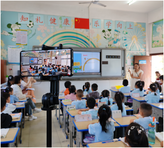 当天,曾都区五眼桥小学教师与何店交流轮岗教师通过信息技术平台视频连线开展了同步听课,实时评课。两地教师不仅能够清晰地看到对方的教学场景,还能实时进行点评和反馈,确保了两地教师在不同地点也能如同身临现场般进行深入的交流与研讨,大大提高了教学研讨的效能,实现资源共建共享。