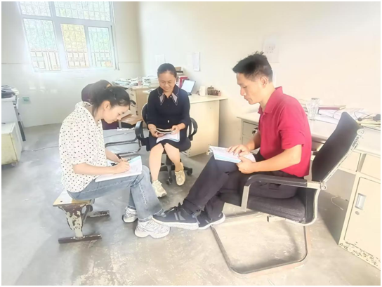 一节愉快轻松的示范课结束后,师徒开始了对这节课的评课活动。乐老师从教材分析、学情分析、教学目标、教学重难点、教学环节、练习设计等方面进行说课,并对本节课的教学进行课后反思,提出了本节课的优点、不足和改进措施。