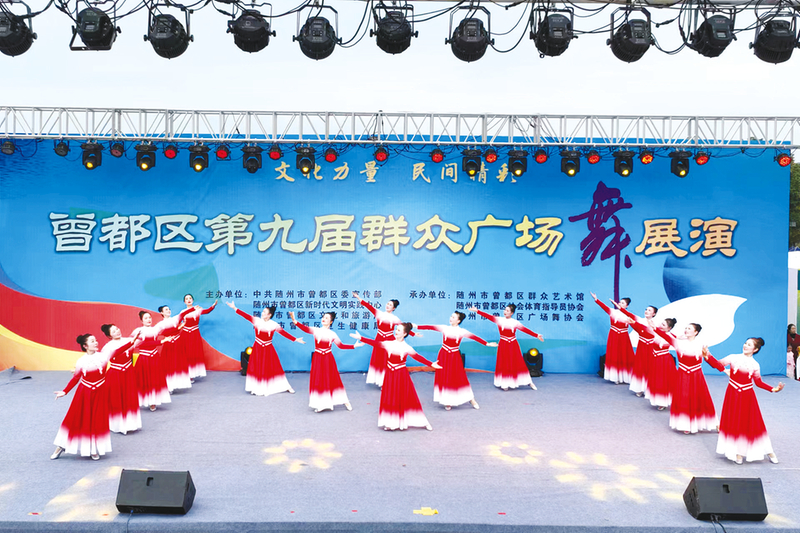 10月5日,“文化力量·民间精彩”曾都区第九届群众广场舞展演在随州博物馆文化广场成功举办,来自该区31支广场舞团队的500多名广场舞爱好者踏着音乐节拍,舞出对祖国的深深祝福。(随州日报全媒记者李文军、通讯员李静摄)