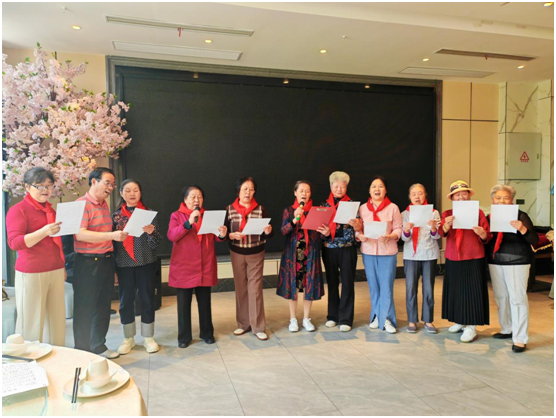 在学校的有序组织下,老教师们还徒步打卡了季梁公园,并开展了丰富多彩的文艺联欢活动。一位位老师走上舞台,以合唱、诗朗诵、民乐、舞蹈等多种形式来抒发心中的幸福和快乐。联欢现场掌声阵阵,精彩连连。悠扬的二胡、灵动的舞姿,优美的唱腔,自信的微笑,多才多艺的老师们用自信和优雅展现了良好的精神风貌。联欢活动在大合唱《歌唱祖国》的嘹亮歌声中顺利结束。