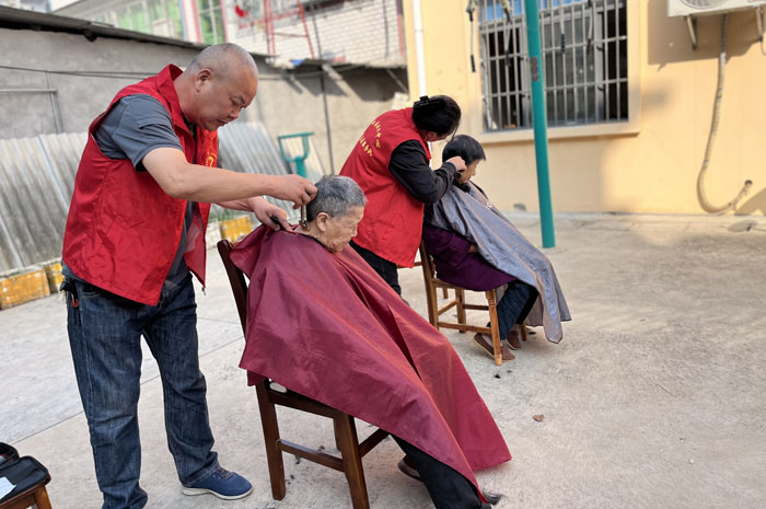 尤为值得一提的是,活动现场还特别设置了免费理发服务区。多位技艺精湛的专业理发师手持剪刀,以精湛的技艺和细致入微的服务,为社区居民,尤其是老年朋友们提供了贴心的理发服务。理发师们耐心询问每位顾客的喜好与需求,细心修剪,让每一位走出红色驿站的居民都能焕然一新,精神焕发,脸上洋溢着满意的笑容。