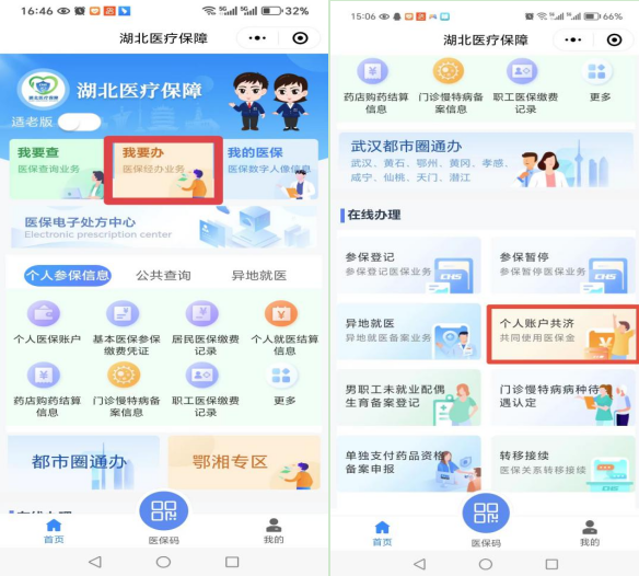 参保职工可搜索微信小程序“湖北医疗保障”点击“我要办”、“个人账户共济” 模块。