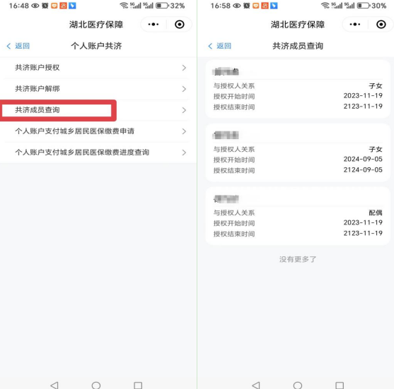 在个人共济界面点击“共济账户查询”,进入查询页面即可查看共济成员。