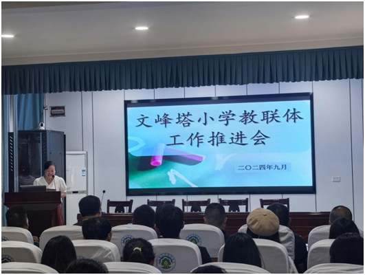 文峰塔小学副校长罗莉围绕教联体建设的实施背景和重要意义,结合《文峰塔小学教联体建设工作实施方案》,对教联体建设工作的推进路径、重点任务、主要举措作了全面细致地解读。铁路小学、何店镇小参会领导围绕教联体建设实施方案进行了热烈讨论并提出了建设性意见,并共同达成文峰塔小学教联体将以“弘扬优秀传统文化,共建成长共同体”为愿景,通过教研合作体与成长共同体的建设,促进教师专业化成长,引领各校教学质量、办学水平等得到共同提升。