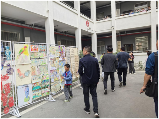 会后,参会领导现场观摩了文峰塔小学师生书法长廊及学生书法作品展、美术作品展和科技作品展。