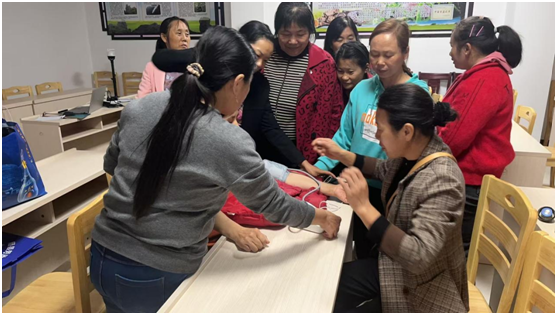 培训主要从理论和实践两方面开展。其中理论部分从相关安全法规、职业道德、老年人日常护理、健康管理、心理慰藉、急救知识、康复护理等多个方面开展学习。实践部分则聚焦老年人各种生活照料方法、清洁卫生照料、睡眠和饮食照料、压疮预防和皮肤护理等诸多技能。培训过程中,讲师通过示范讲解、实操演示以及“手把手”指导教学方式教授参训人员,帮助学员更快速地掌握实用技能。学员们在讲师的指导下体验式互动练习,从老人日常起居照料再到病情观察、用药管理、急救技能、安全保护等等一系列的专业技能,实现了理论与实践相结合。