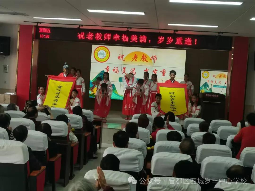 尊老敬老是我们的传统美德,学校教师、同学们也积极踊跃的通过表演节目的方式,为老教师们送上了祝福。舞台上,师生歌声嘹亮、舞姿优美,赢得了老师们的阵阵掌声和喝彩声。