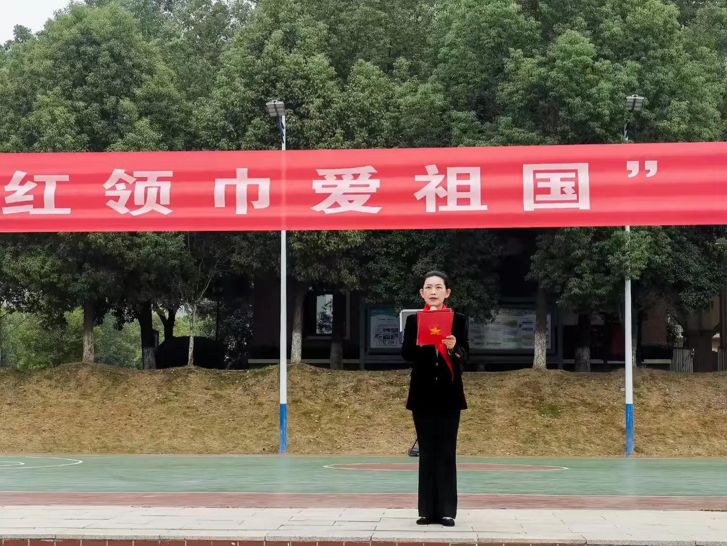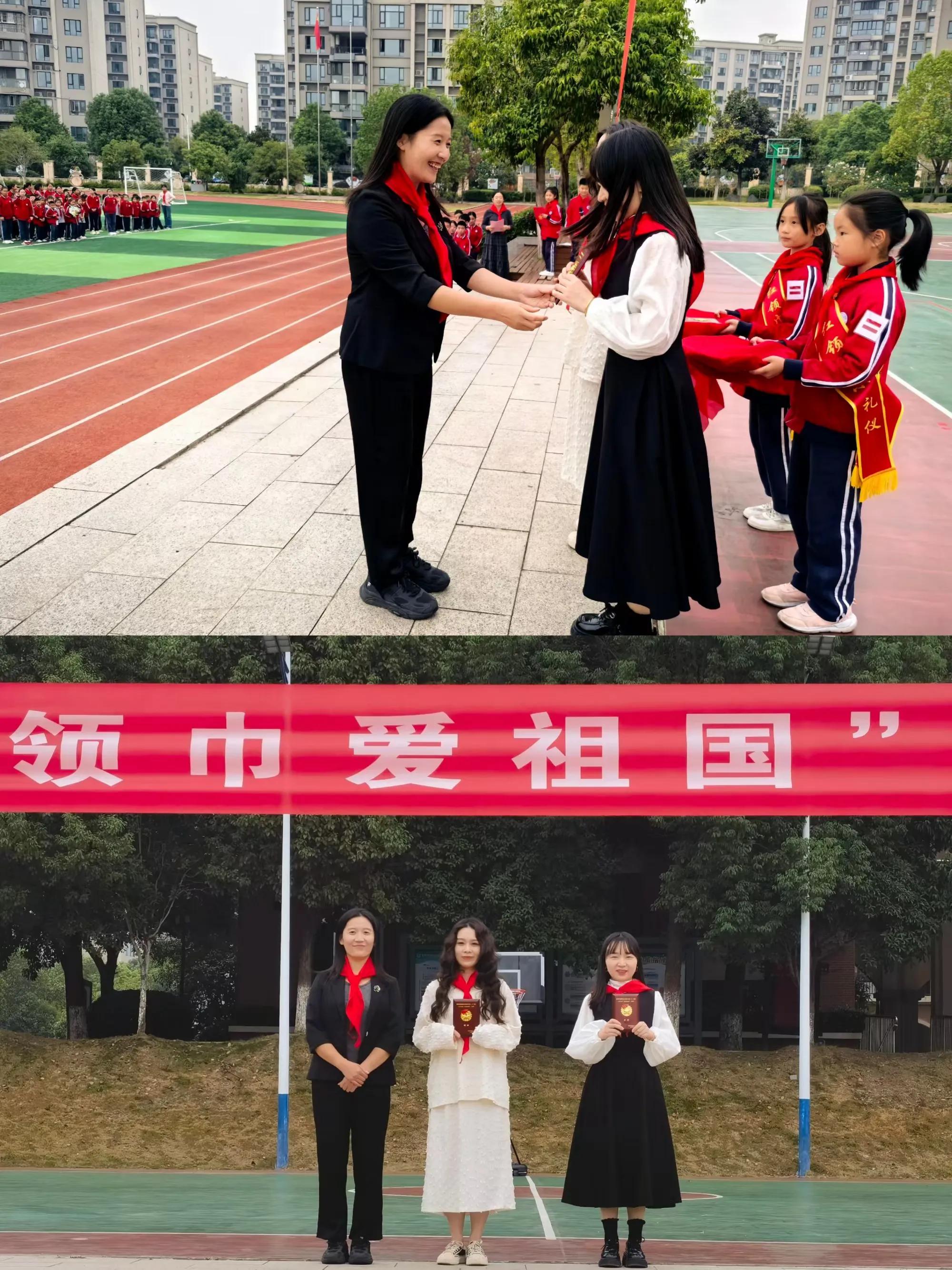 新队员们身姿笔挺,眼神坚定,他们举起小小的拳头,脸上写满庄重与热忱。“准备着,为共产主义事业而奋斗!”在大队辅导员胡晶晶的带领下,他们用稚嫩却有力的声音回应:“时刻准备着!”