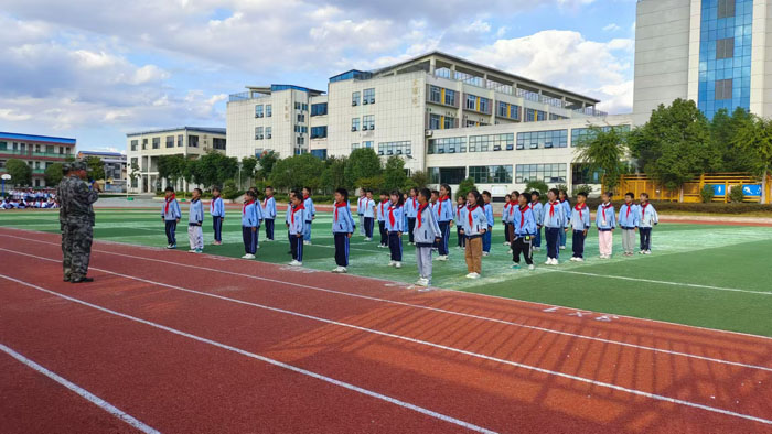 国防教育展示活动,对学生进行了祖国的疆土、国界线、边界线的教育,让学生初步了解“三防”知识。学生进行队列科目汇报表演,展示军训成果。最后由五年级学生展示了国防教育桌操《中国少年》。