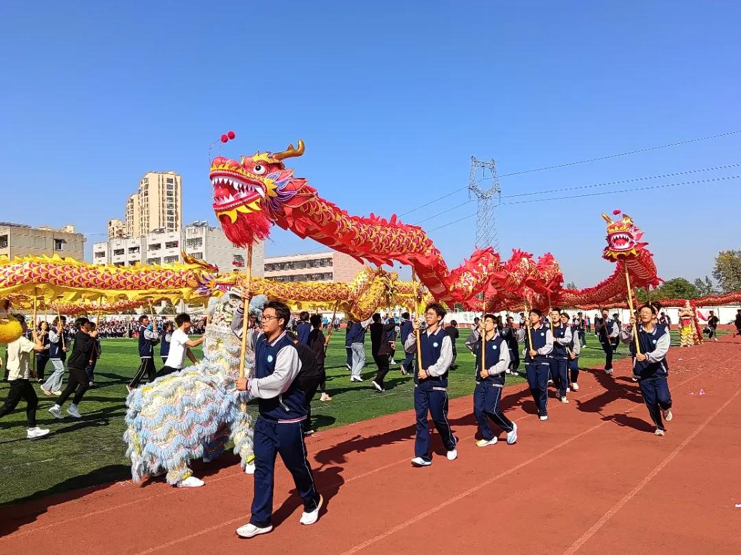 上午8点,体艺节开幕式在学校运动场隆重举行。首先,各方阵入场,同学们舞动青春旋律,挥洒创意色彩,体艺交融,共创辉煌。49支运动员代表队以饱满的精神和昂扬的斗志自信入场,举着班牌班旗,迈着整齐的步伐,和着鼓乐的节拍,行走在新时代的道路上。接着,进行升旗仪式、运动员及裁判员代表宣誓。最后,开展了舞龙舞狮、课桌舞、舞动青春韵律操、广播体操、扇子舞等学生社团节目汇演。