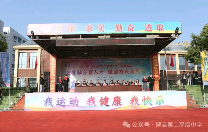 随州新闻网讯 (通讯员 陈翠维 马勇 石佳)秋光为序,筑梦启航。为检阅学校素质教育成果,展示师生风采,激发校园活力。10月22日上午,随县二中举行校园文化节暨第四十三届运动会。洪山镇党委政府、县教育局、县二中全体师生共2300余人参加了本次活动。