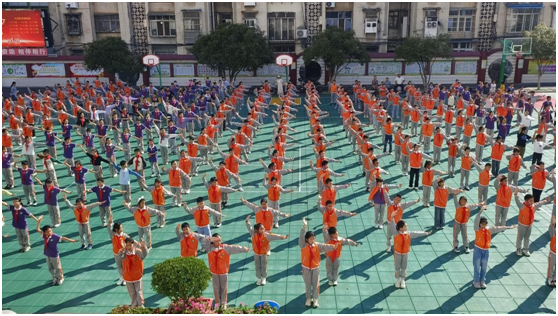 展演活动中,孩子们英姿飒爽、气宇轩昂,从抱拳礼开始,伸臂、推掌、踢腿等一系列动作整齐划一、刚柔并济;呐喊声气势如虹、铿锵有力。一招一式尽显少年意气,一起一落张扬青春活力。