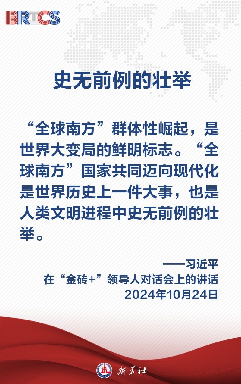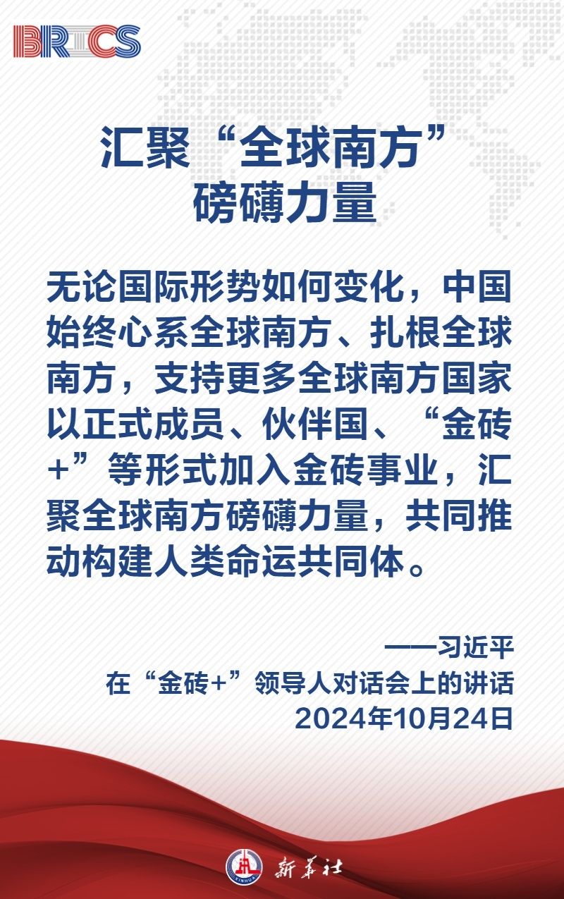 当地时间10月24日上午,国家主席习近平在喀山会展中心出席“金砖+”领导人对话会并发表题为《汇聚“全球南方”磅礴力量 共同推动构建人类命运共同体》的重要讲话,阐明中国主张——