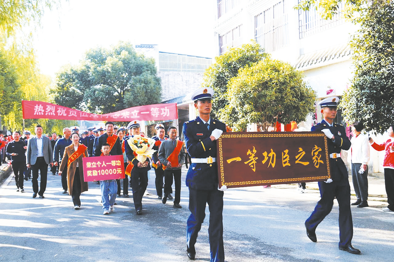 在茂名石化“6·8”泄漏起火事故处置中,随州籍消防官兵伍焱勇闯火海战烈焰,被应急管理部消防救援局荣记个人一等功。10月25日,广东省茂名市消防官兵跨越两千里来到曾都区洛阳镇,为英雄之家送来了“一等功臣之家”的荣誉牌匾。