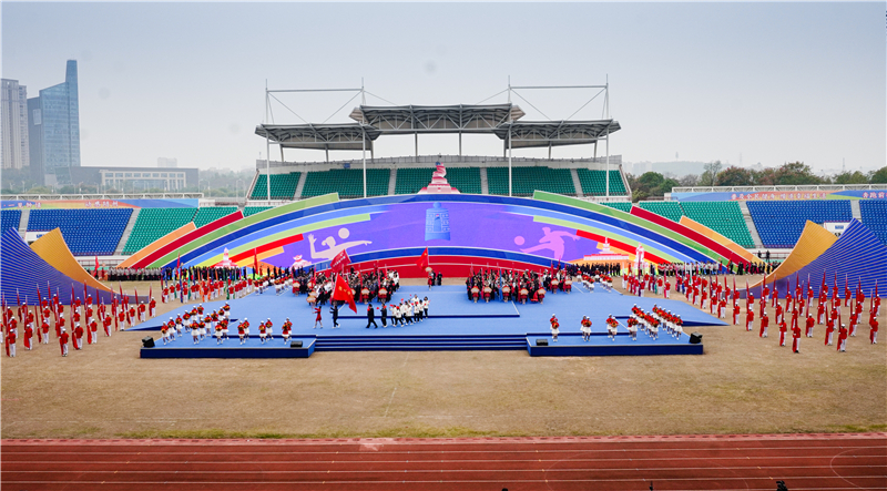 秋高气爽,滨湖体育场欢声雷动,场内群众以广场舞、花鼓戏等表演笑迎八方宾朋。
