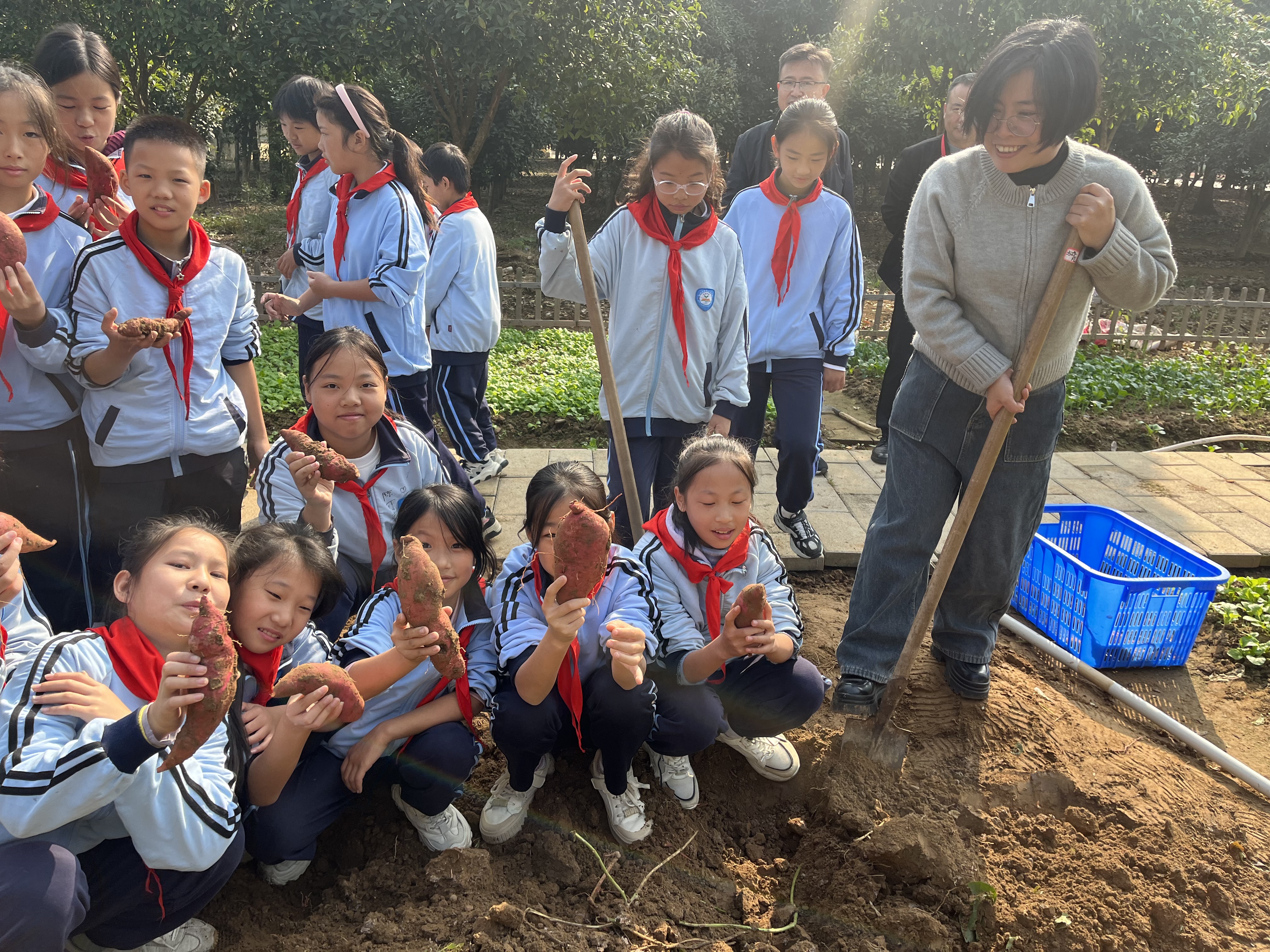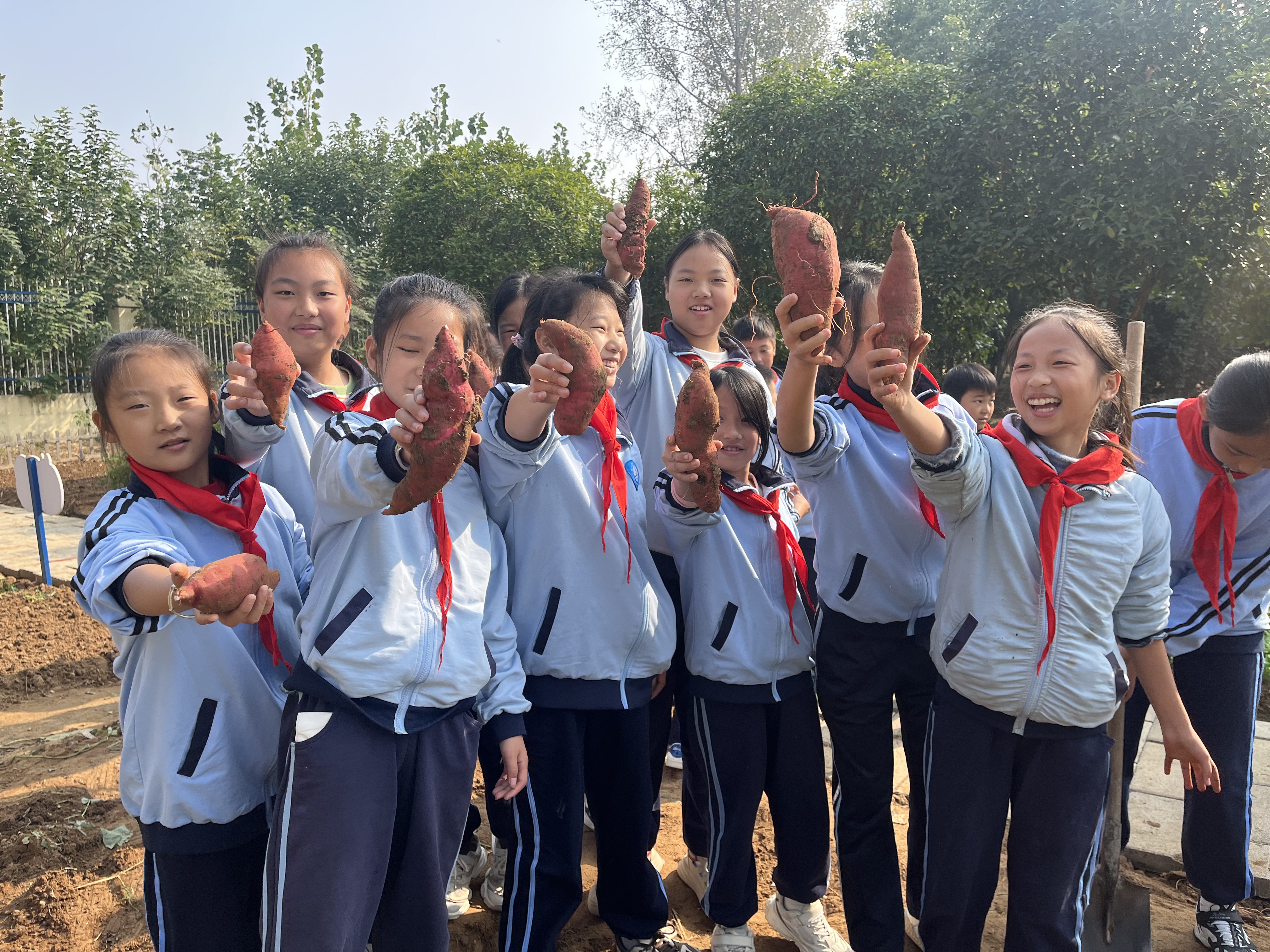 紧接着,进入了令人期待的动手实践环节。同学们分工合作,热情高涨地开始挖番薯。大家齐心协力,不怕脏、不怕累,在土地中寻找着丰收的喜悦。经过一番努力,同学们喜获丰收,看着自己亲手挖出的番薯,脸上洋溢着自豪和满足的笑容。