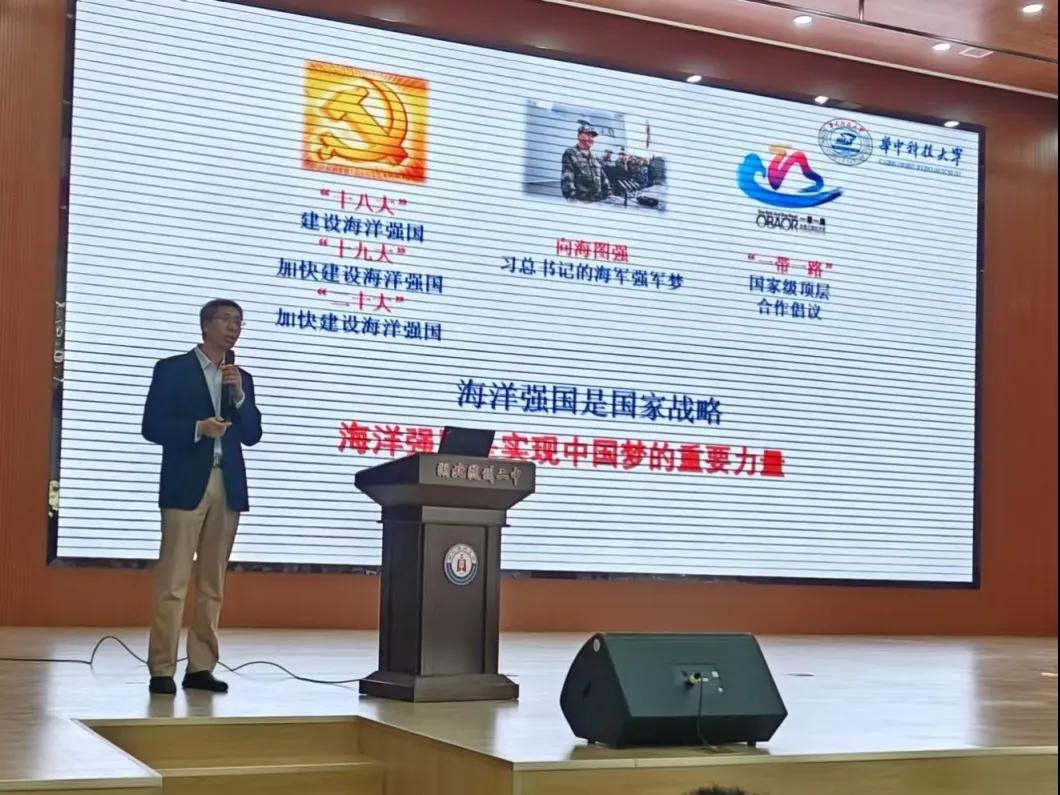 当日上午,来自华中科技大学的冯大奎教授和李周密教授以“学长”的名义给2024级的学弟学妹们带来了一场科学盛宴。他们在《认识海洋结构物中的小物件》的讲座中,以渊博的知识和独特的见解,为高一学子们打开一扇通往知识殿堂的大门。同时,他们回顾自己在二中的求学生涯,以自己的亲身经历勉励莘莘学子——为理想目标而努力奋斗。讲座结束以后,同学们纷纷和两位”学长“进行交流。