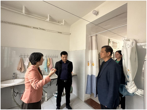 李琳实地查看了学生宿舍集中供水、热水供给、室内设施、环境卫生等情况,对吴山镇中心学校办学条件、学生住宿条件和教职工的努力方面取得的成果给予了高度的评价,对学校干净舒适的生活环境和周到细致的管理服务给予充分肯定,并对今后的工作提出了指导意见。