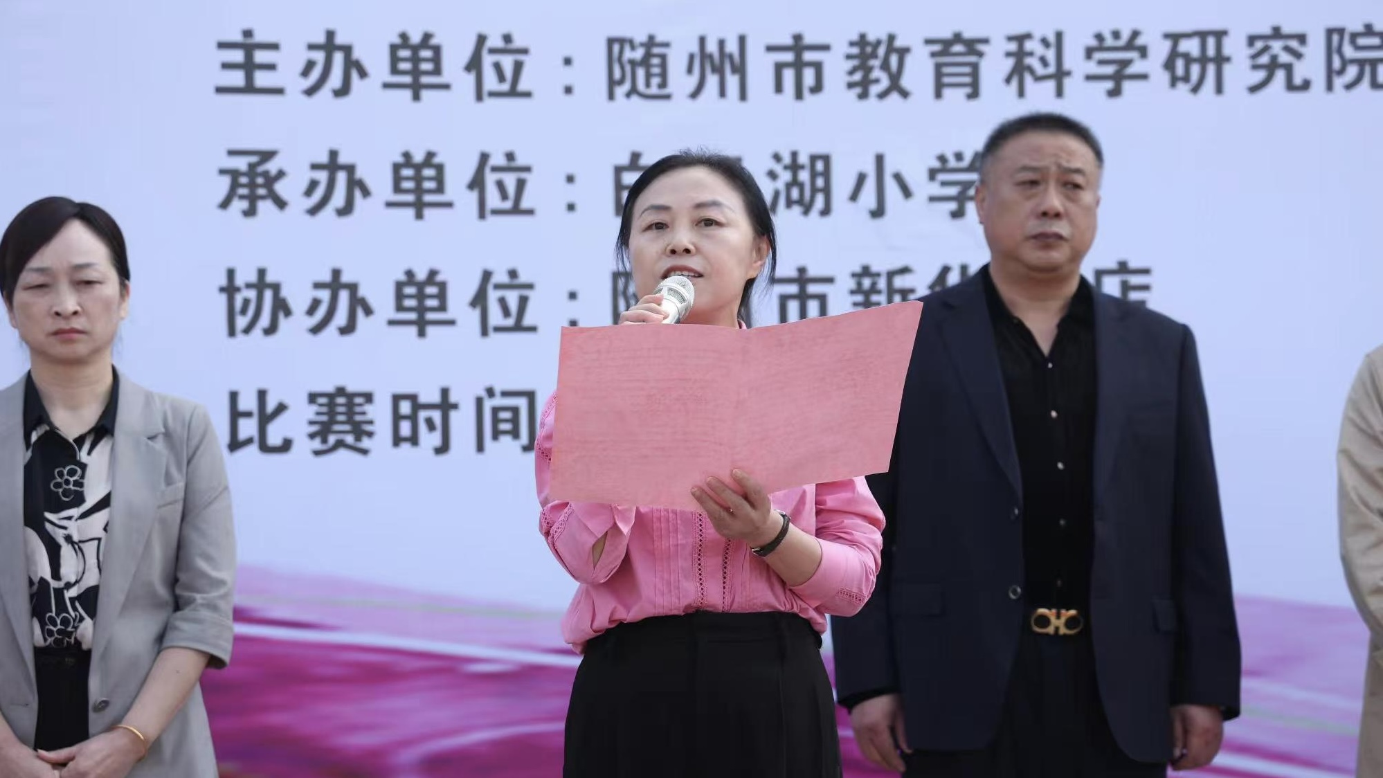 首先,曾都区白云湖小学副校长金辉致欢迎辞。随后,随州市教科院副院长吴军致辞并宣读比赛规则,她强调,举办现场书法大赛,是弘扬和传承优秀传统文化的有效举措,希望广大师生通过学习书法、练习书法,从中体会中国书法艺术的博大精深,让经典点亮人生,让墨香溢满校园。最后,曾都区教研室主任陈全胜宣布比赛开始。