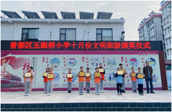 ——曾都区五眼桥小学举行十月份文明班级颁奖仪式