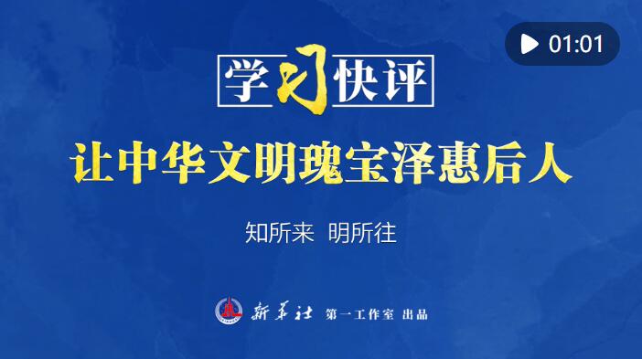 中华文明源远流长、博大精深。“文明圣地”良渚,“华夏主脉”二里头,“古蜀之光”三星堆……中国拥有百万年的人类史、一万年的文化史、五千多年的文明史。知所来,明所往。守护好、研究好文化遗存,推动中华优秀传统文化创造性转化、创新性发展,才能更好地建设中华民族现代文明,为强国建设、民族复兴提供有力精神支撑。