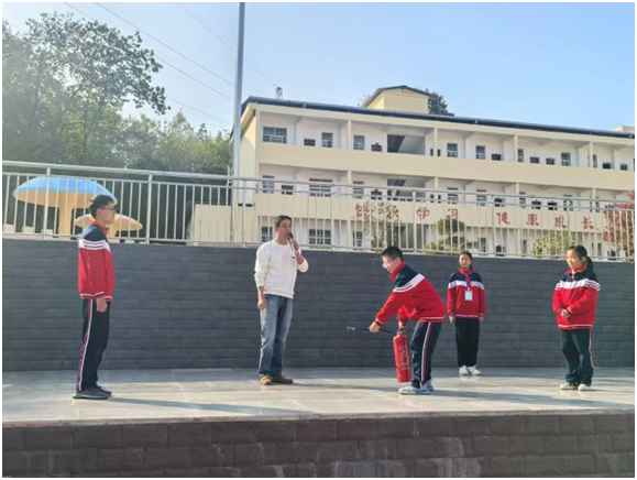 演练前各班主任向学生明确如何疏散、疏散顺序、疏散注意事项,教育学生要严肃对待,遵守纪律,听从老师、广播的命令,确保演练安全、有序、快速进行。随着紧急警报的响起,消防演练正式开始。 各班班主任联合楼层疏导教师,沉着冷静地组织学生有序撤离到学校操场安全地带。整个疏散过程配合默契,组织有条不紊,人人各尽其责。消防逃生演练后,指导老师现场演示了灭火器的使用方法,特别对干粉灭火器的使用方法进行了详细讲解,传授了灭火器的使用口诀“一提、二拔、三瞄、四压”,并进行现场演示。随后在模拟现场邀请学生上前演练学习使用方法,力争让每一位师生都做到“消防安全心中记,灭火器材会使用”。
