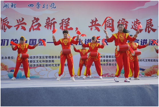 情景舞蹈《英雄赞歌》、随州慢板《这十年》、充满活力的非洲鼓表演、悦耳的《自然交响曲》以及气势磅礴的表演唱《我是中国人》等节目轮番上演,精彩不断。这些节目从不同角度展现了乡村振兴的成就、文化的传承与发展,以及社区居民积极向上的精神风貌。