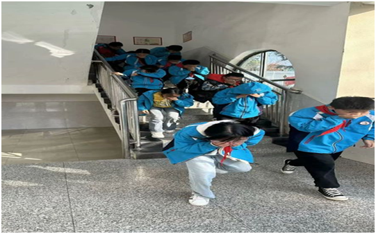 15:00消防警报响起,消防疏散正式拉开序幕。班主任组织学生用双手掩住口鼻,迅速到走廊集合,沿墙壁、按规定楼梯疏散撤离教学楼。每个楼层都有任课教师参与疏导,学生跑出教学楼,快速到操场集合。疏散过程有速度,有秩序,提高了学生自我防护和自救的能力 。