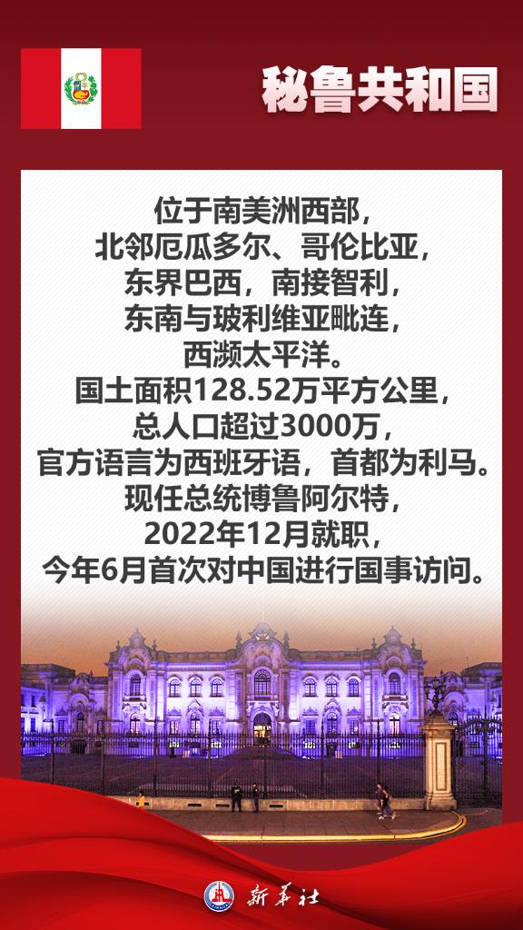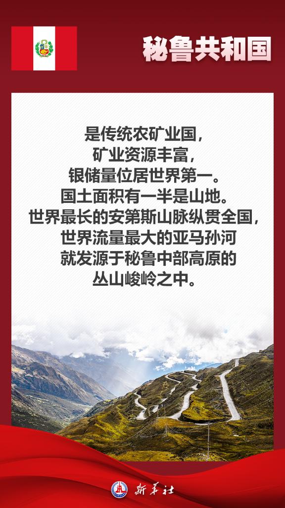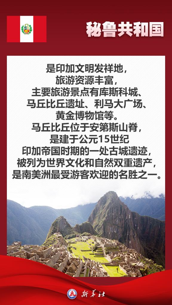 应秘鲁共和国总统博鲁阿尔特邀请,国家主席习近平将于11月13日至17日赴利马出席亚太经合组织第三十一次领导人非正式会议并对秘鲁进行国事访问。秘鲁位于南美洲西部,是印加文明发祥地,也是最早同新中国建交的拉美国家之一。关于秘鲁,七张海报带你了解更多——