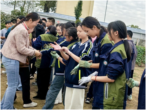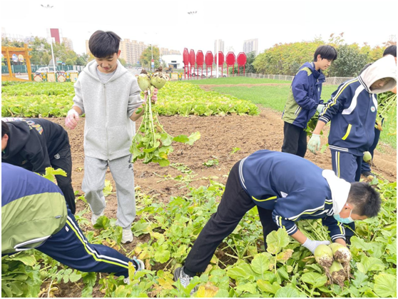 瓦蓝的天空,碧绿的菜畦,嫩绿的萝卜叶子在微风中轻轻摇曳。五丰学校九年级学生在老师的带领下,满怀期待地来到“五谷丰登园”。活动开始前,老师认真讲解拔萝卜的技巧和注意事项,将劳动教育的理念巧妙融入其中。
