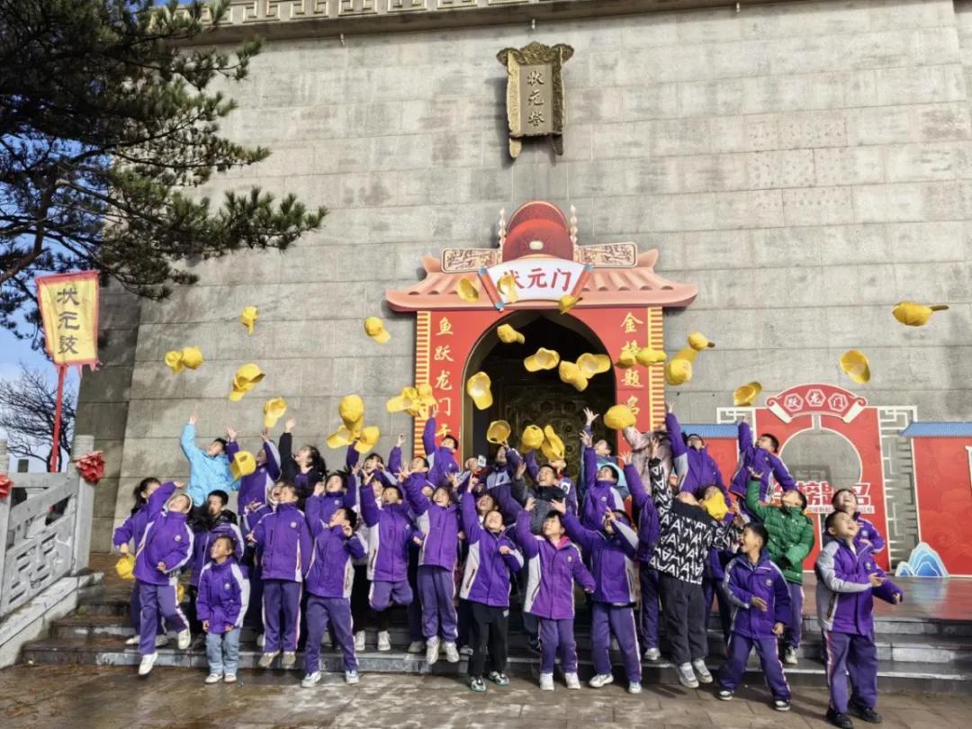 踏新途,觅旧迹。步入大洪山革命陈列馆,一幅幅弥足珍贵的资料图片、一段段艰苦卓绝的革命历史、一件件珍藏的红色实物,带领同学们沿着历史的足迹,感受那段硝烟弥漫的战争岁月,重温那段红色时光。植物拓染活动则让孩子们与大自然更加亲近,采集各式各样的植物,通过拓染的方式将它们的色彩和形状留在布上,每一个图案都是大自然赋予我们的独特礼物。一步一个台阶,同学们还纷纷登上状元台,明确心中的志向,并纷纷表示为了目标而奋斗!