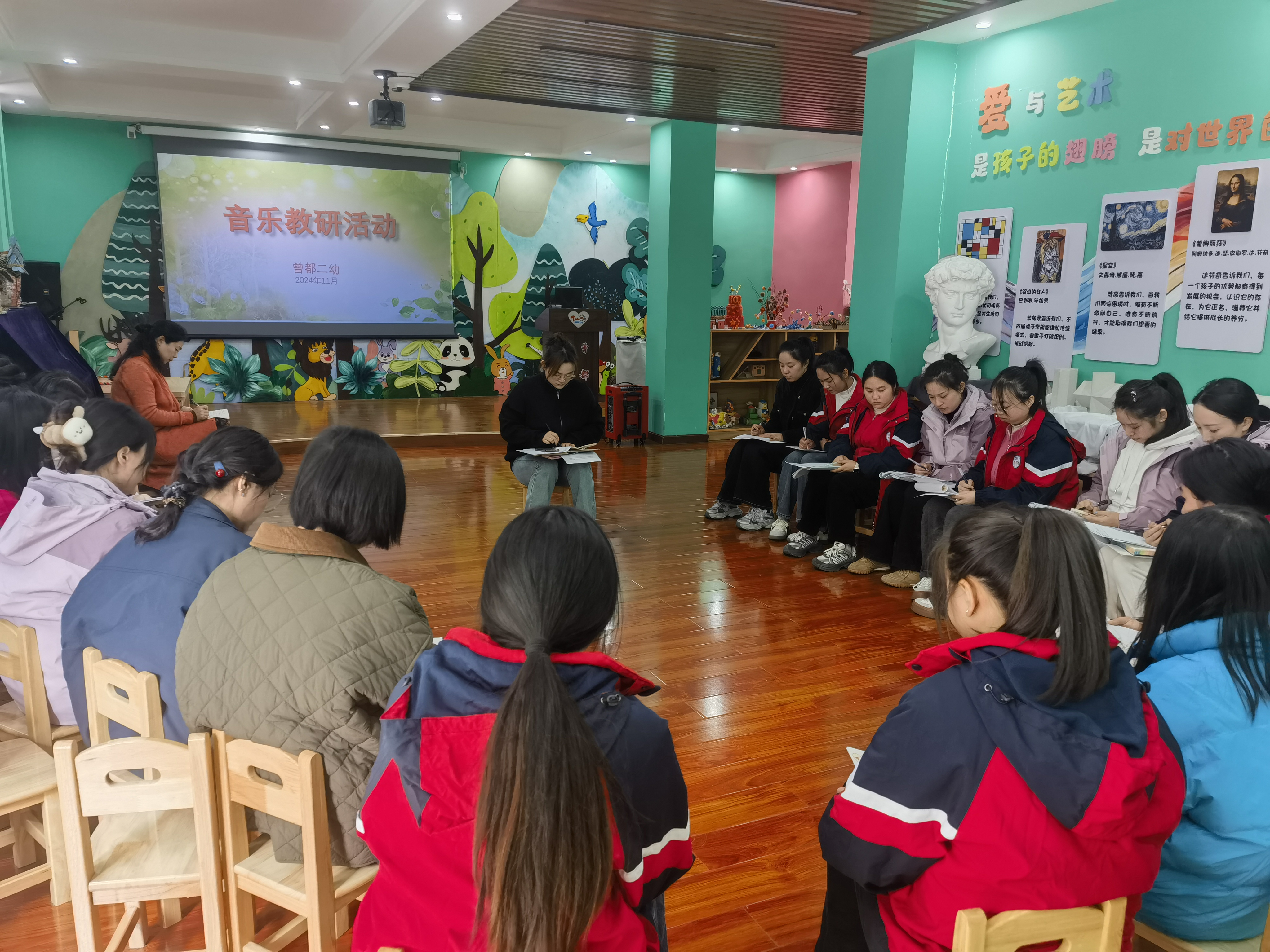 观摩活动结束后,教师们围绕音乐活动展开教研,以“学习、交流、反思、提升”为目的,通过自评与他评相结合的方式,畅所欲言,从教学目标、环节设计、道具使用、语言教态、师幼互动、教学效果等多方面进行评议,指出活动亮点和不足,并提出改进措施,教师们虚心汲取集体智慧,取长补短,不断改善自己的教学方法和技巧。