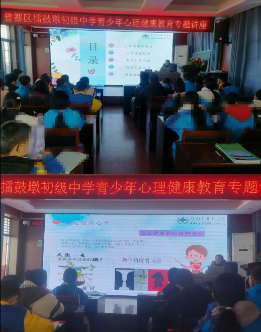在当前青少年心理健康问题突出及青少年违法犯罪率居高不下的背景下,擂鼓墩初级中学邀请相关方面专家走进校园,开展专场心理健康讲座与心理咨询,与辖区派出所联合开展法治宣讲活动,既丰富了学生的心理健康和法律知识,提高了他们对保持健康心理和知法、守法、用法的认识;同时,也对学生中潜在的心理健康问题和违纪违法现象,达到了提早干预、未雨绸缪的教育效果,为护航学生安全、建设平安校园提供了有力保障。