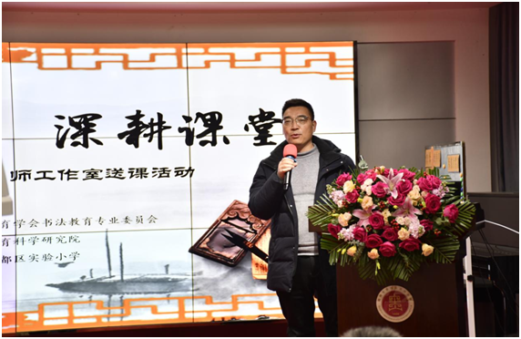 宜昌市伍家岗区陈晓勇名师工作室主持人陈晓勇老师以《正是书法扬帆时》进行书法名师工作室建设经验交流。