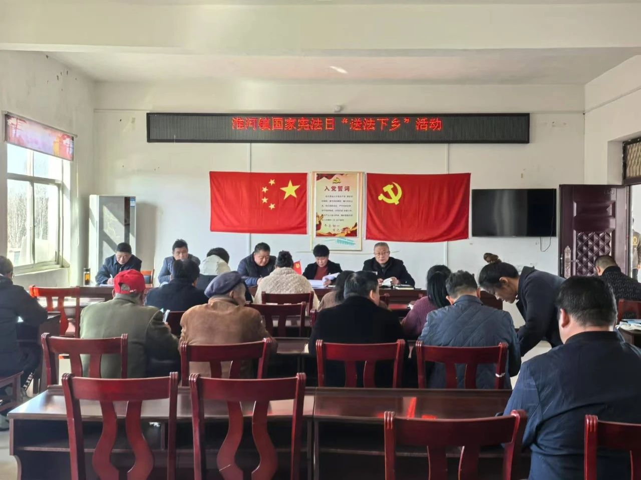 在这次现场集中普法宣传活动之前,淮河镇已于11月27日召开国家宪法日宣传氛围营造工作推进会,安排部署了分片区开展“送法下乡”活动等具体工作。